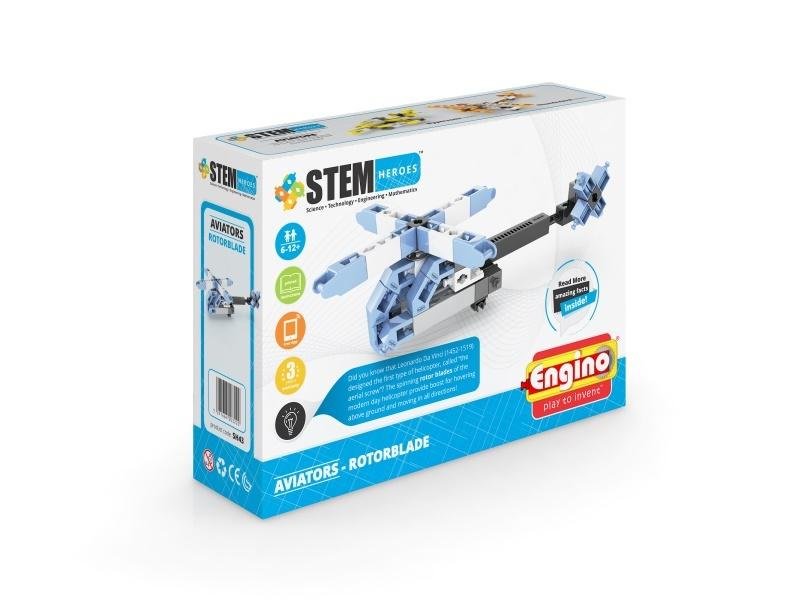 Zestawy klocków STEM Heroes, seria Awiacja, umożliwiające zbudowanie 1 modelu z każdego zestawu, ulotka informacyjna dotycząca tematyki danego zestawu, bezpłatna aplikacja do ściągnięcia z Internetu. Zestawy łączą się, po zebraniu trzech zestawów można zbudować model combo'. przeczytaj całość