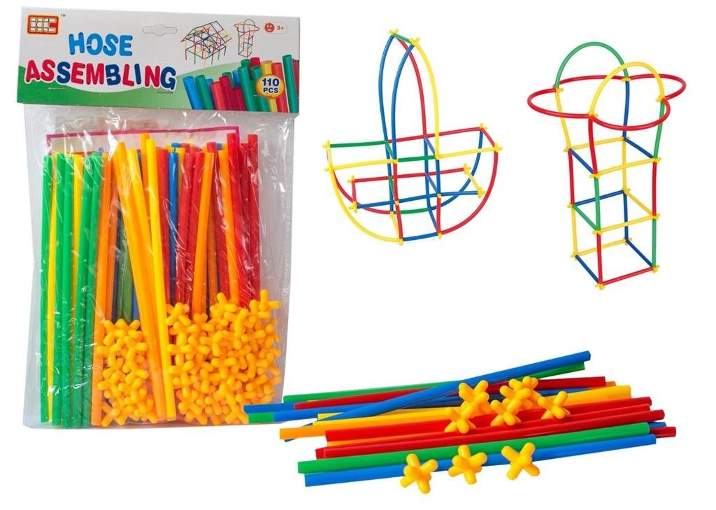 Klocki - patyczki, ktróe za pomocą krzyżaków, można łączyć w różne figury. 110 elementów w różnych kolorach. Patyk-słomka o wymiarach 19x0.5 cm przeczytaj całość