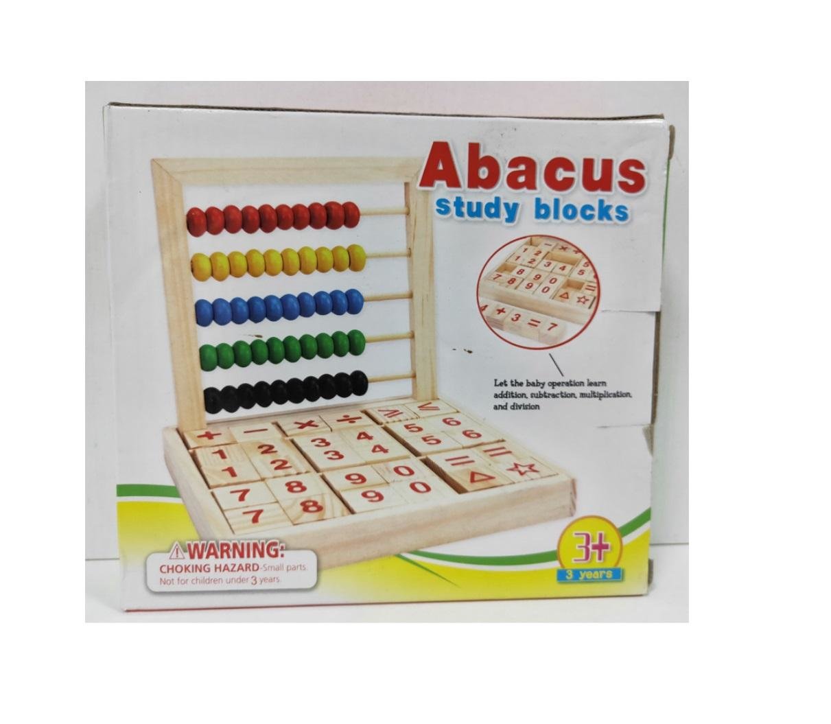 Liczydło z drewnianymi klockami z cyframi oraz symbolami działań matematycznych. przeczytaj całość