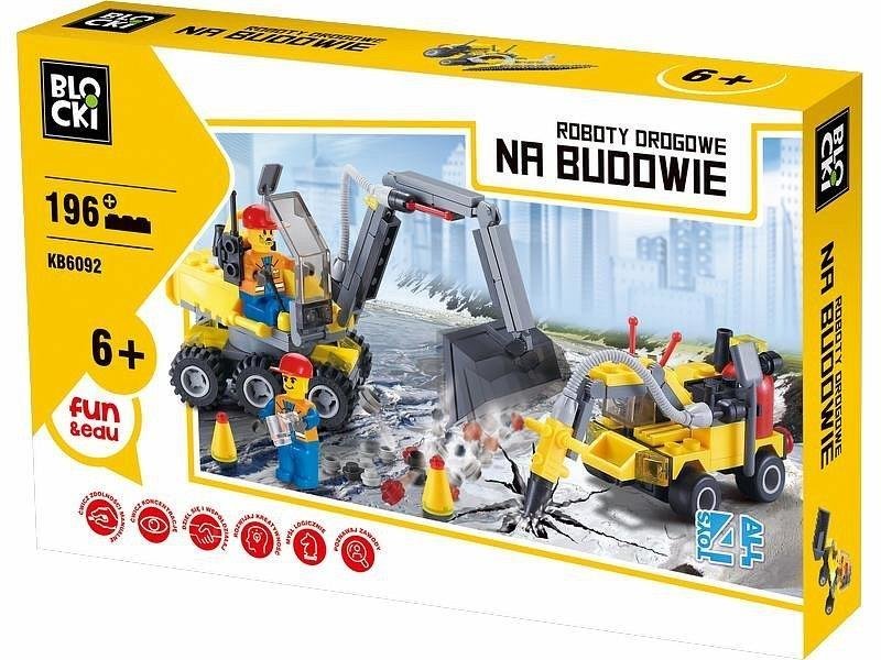 Rewelacyjny zestaw klocków dla małych budowniczych.Z elementów zawartych w zestawie można zbudować: koparkę oraz pojazd z młotem pneumatycznym.Wymiary koparki: szer. 6 cm, wys. 8 cm, dł. z łychą 19 cmWymiary pojazdu z młotem: szer. 4 cm, wys. 5 cm, dł z młotem 12 cmW komplecie znajdują się 2...