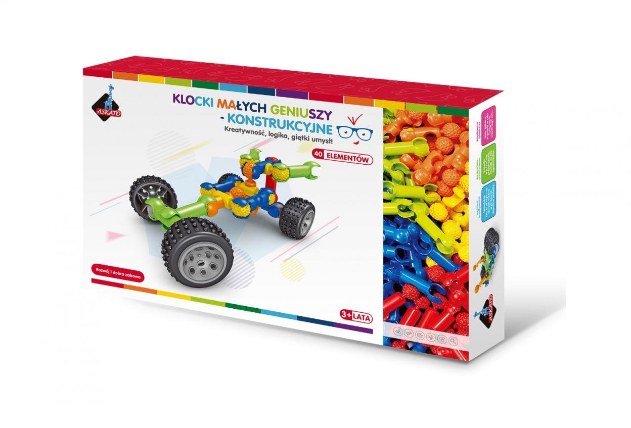 40 klocków w 8 kolorach pozwalają stworzyć fantastyczne, przestrzenne figury takich jak dinozaur, samochód czy dźwig. POLSKIE OPAKOWANIE