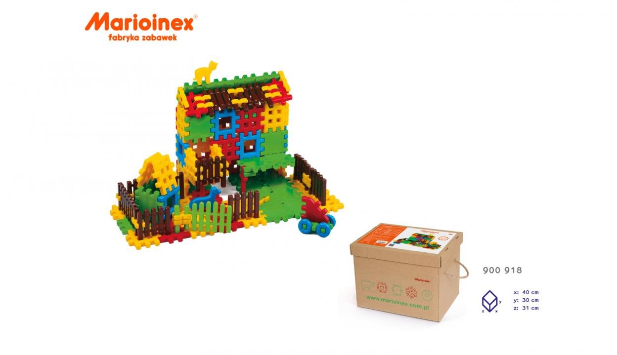 Zestaw klocków konstrukcyjnych gospodarstwo domowe składający się ze 120 elementów. Opakowanie: ekologiczne pudło kartonowe z uchwytami. przeczytaj całość