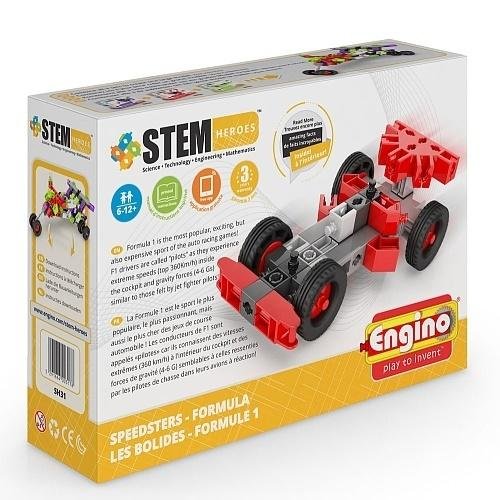 Zestawy klocków STEM Heroes, seria Pojazdy wyścigowe, umożliwiające zbudowanie 1 modelu z każdego zestawu, ulotka informacyjna dotycząca tematyki danego zestawu, bezpłatna aplikacja do ściągnięcia z Internetu. Zestawy łączą się, po zebraniu trzech zestawów można zbudować model combo'. przeczytaj całość