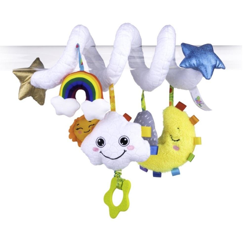 Pogodni Przyjaciele dbają o dobry nastrój Pluszaków, zapewniając im rozrywkę o każdej porze dnia! Milusią spiralę zdobi piszczący księżyc, szeleszczące słoneczko, piszczałka w kształcie kropelki deszczu i bezpieczne lusterka do samopoznania malucha. Znajdziemy tu także miękki gryzaczek i kolorowe...