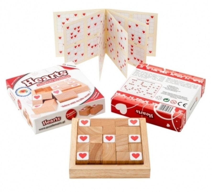 ( 9 elementów - 41 układów do rozwiązania )Hearts to łamigłówka, która wymaga wyobraźni i cierpliwości. Wyzwól w sobie konstruktorską pasję i spróbuj ułożyć ponad 40 wzorów jakie dla Ciebie przygotowaliśmy. Siedem z dziewięciu elementów oznakowano z obu stron serduszkami - jak myślisz, ile wzorów...