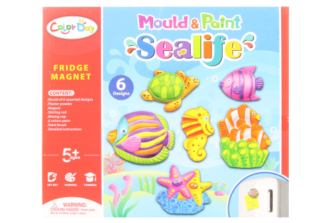 Opakowanie zawiera gips, plastikową miskę, plastikową formę z 6 różnymi motywami, 6 farbek do pokolorowania, pędzelek, magnesy - możesz wykonać magnes oraz instrukcję przygotowania. Wymiary opakowania ok. 27 x 23 x 5,5 cm. Wiek: od 5 lat przeczytaj całość