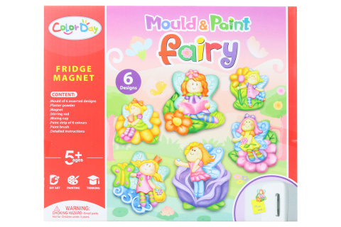 Opakowanie zawiera gips, plastikową miskę, plastikową formę z 6 różnymi motywami, 6 farbek do pokolorowania, pędzelek, magnesy - możesz stworzyć magnes oraz instrukcję przygotowania. Wymiary opakowania ok. 27 x 23 x 5,5 cm. Wiek 5+ przeczytaj całość