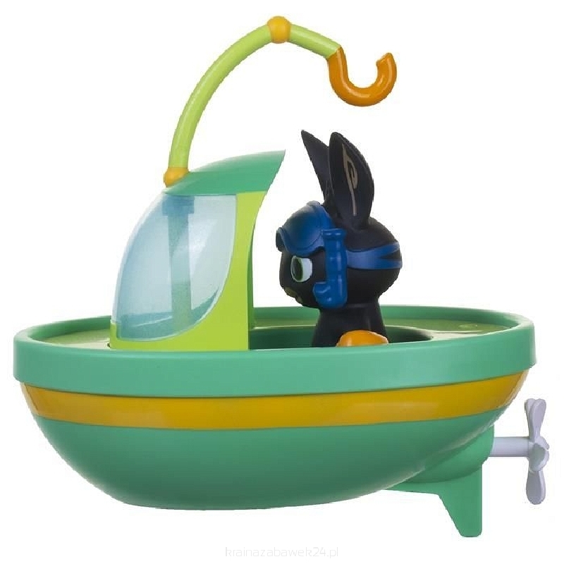 Bing na palubě své lodičky. Je to natahovací hračka do koupele, které stříká vodu. Vyrobena z pevného plastu, nepotřebuje žádné baterie! przeczytaj całość