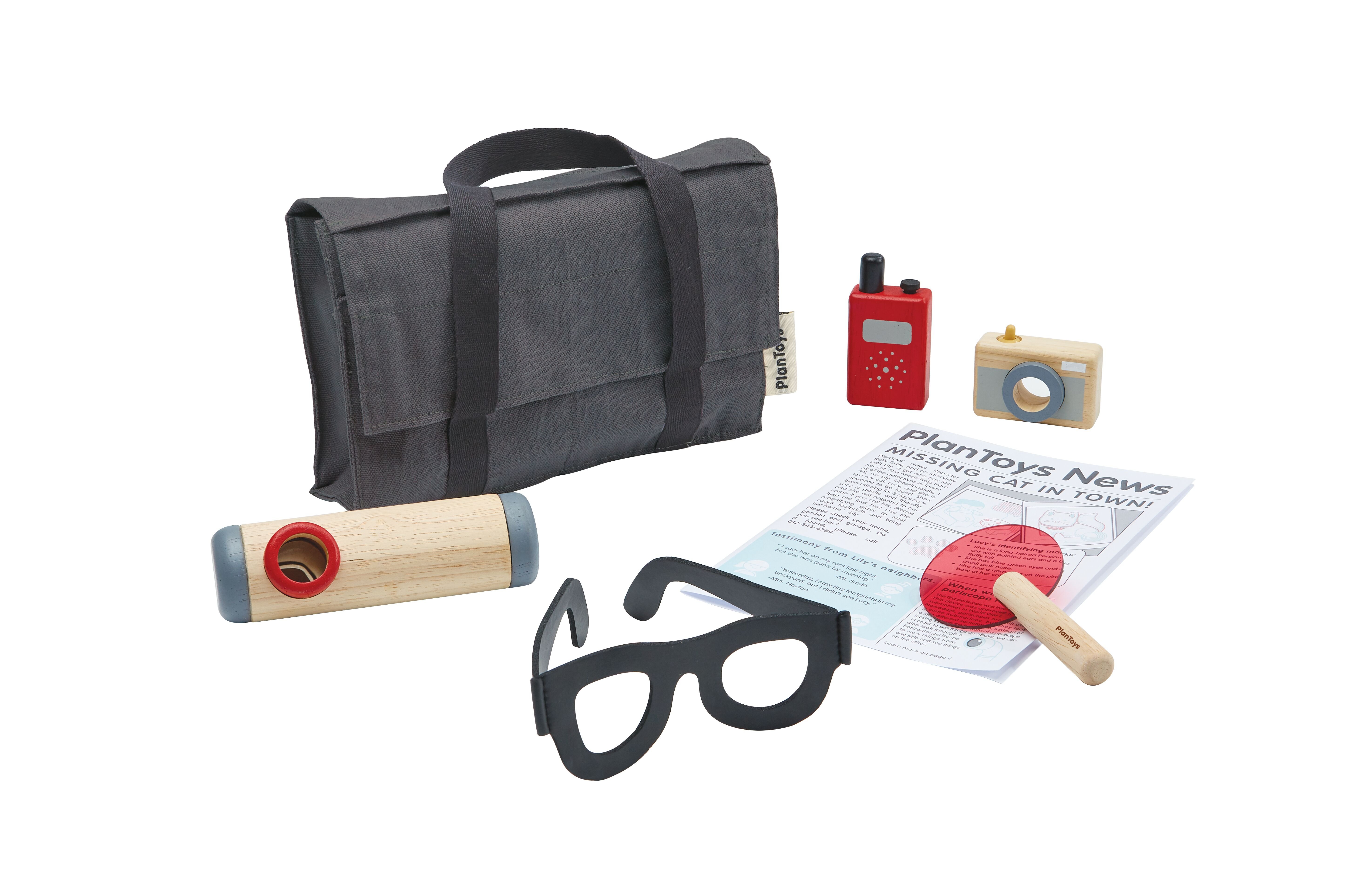 Set obsahuje vše, co má každý správný detektiv mít - brýle, vysílačku, fotoaparát, brašnu, periskop a lupu s červeným sklem. Vydejte se do temných uliček a rozšifrujte příběhy a zápletky, které se policistům nepodařily objasnit....