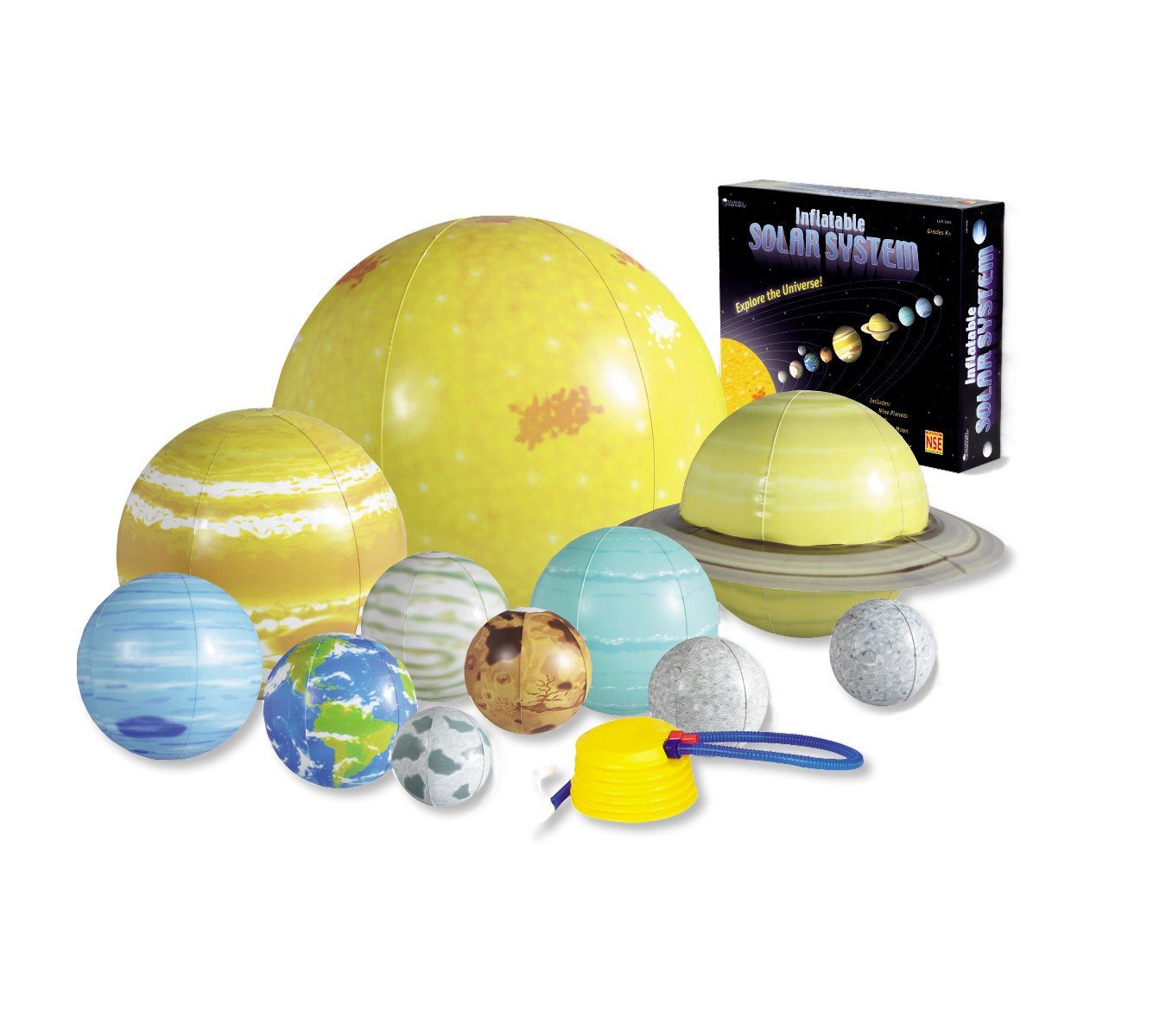 Zestaw nadmuchiwanych planet stworzy w pokoju dziecięcym atmosferę prawdziwego Układu Słonecznego. Nadaje się np. do zawieszenia na suficie. Zestaw zawiera: 9 planet, Słońce i Księżyc, pompkę nożną, zestaw naprawczy do planet oraz instrukcję obsługi. Wymiary: Słońce 58 cm, Jowisz 36 cm, Saturn 28 cm (z pierścieniami), Neptun 23 cm, Uran 23 cm, Wenus 19 cm, Ziemia 19 cm, Mars 15 cm, Merkury 15 cm, Pluton 13 cm, Księżyc 13 cm. Nadaje się dla dzieci w wieku od 5 do 9 lat.