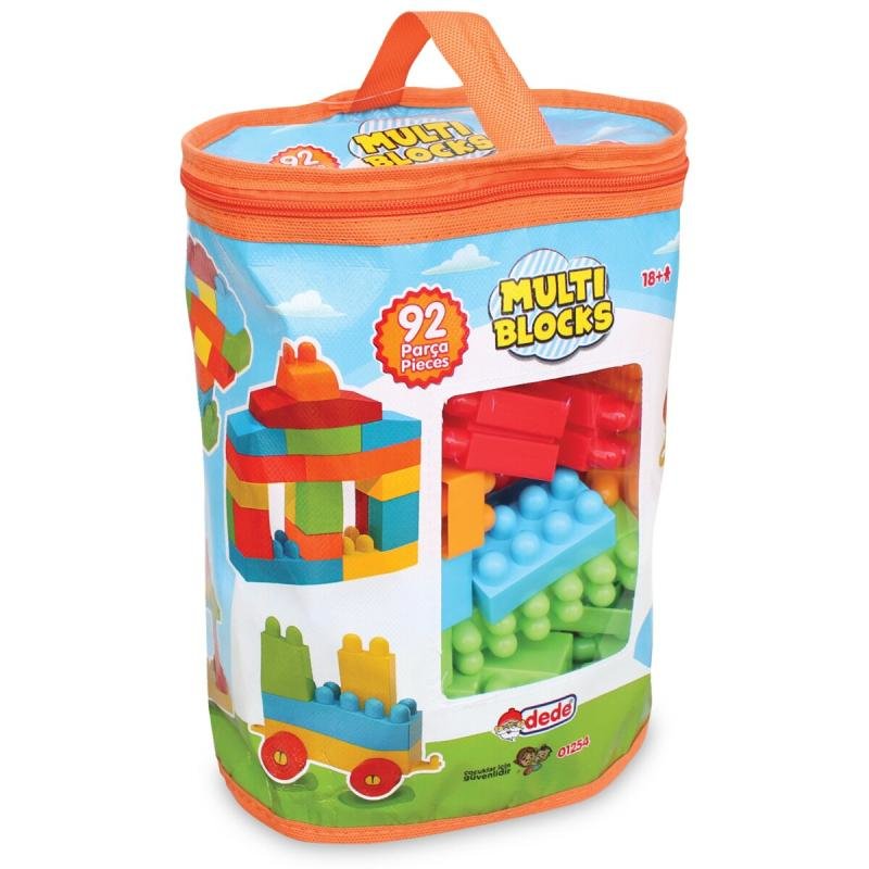 Zabawa klockami rozwija u dzieci motorykę małą. Każdy mały budowniczy może, korzystając z klocków i specjalnych elementów, zbudować wysokie wieże, zamki, wesołe zwierzątka lub cokolwiek innego, o czym właśnie marzy. Klocki i elementy są dostosowane do rączek maluchów, dzięki czemu łatwo je chwycą i umieszczą. Przeznaczone dla dzieci od 18 miesięcy. Opakowanie zawiera 92 szt. klocków. Wymiary opakowania: 140x200x270