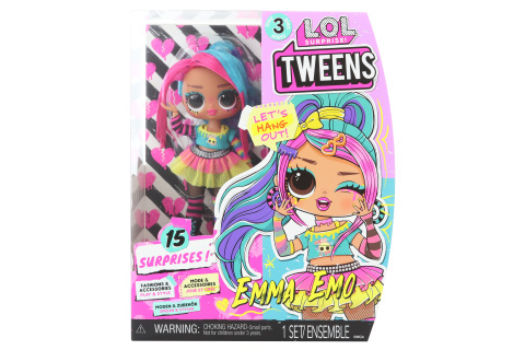 Představujeme nejprodávanější L.O.L. Módní panenky Surprise Tween Series 3: pozdravte Emmu Emo! Emma je temperamentní, energická umělkyně, kterou přitahuje vše jasné, barevné a roztomilé. Ve svém umění ráda kombinuje různé styly, aby vytvořila nečekané a ostré kousky. Navíc je to velká sestra...