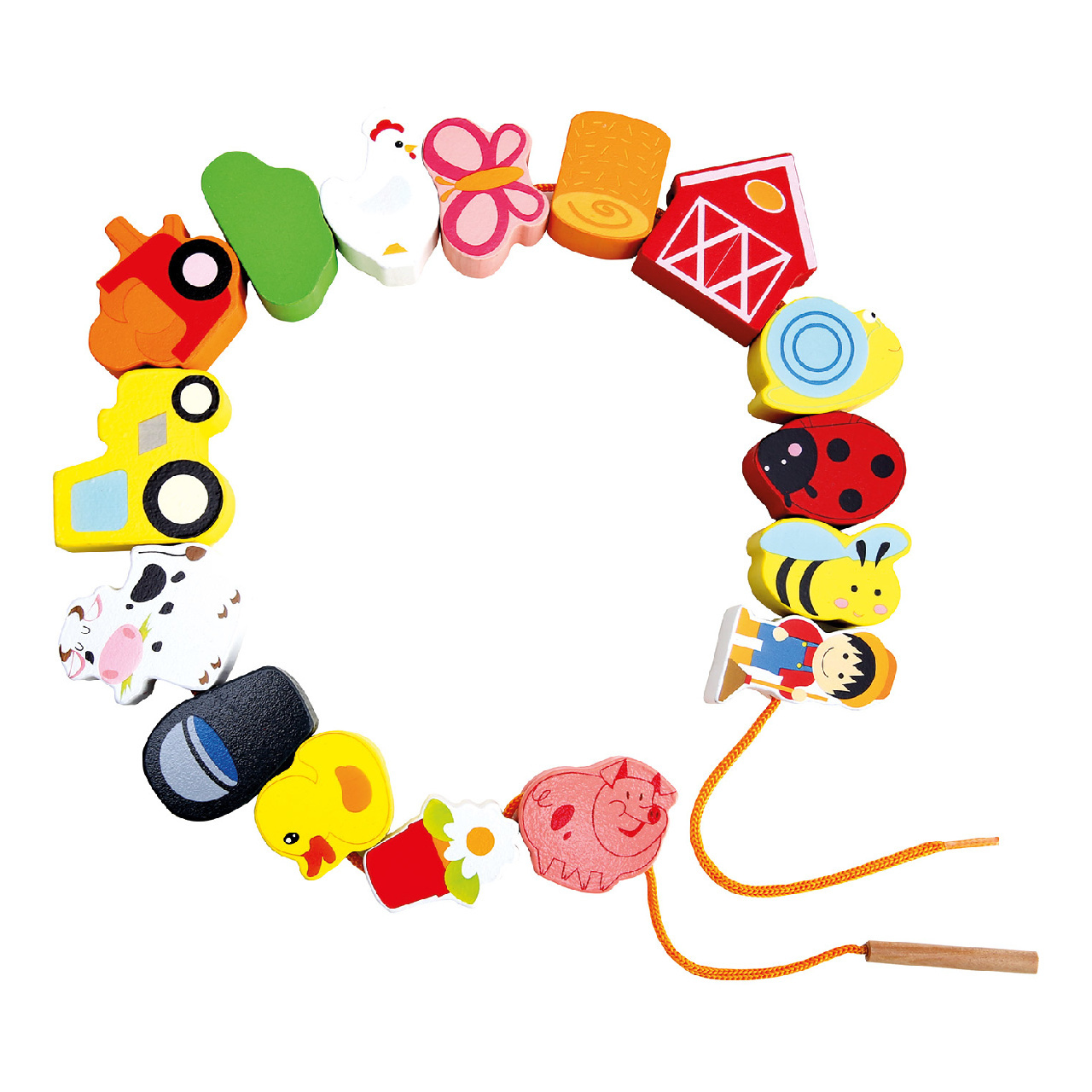 Navlékací dřevěná hračka je vyrobena z kvalitního přírodního dřeva s krásně hladkým povrchem. Obsahuje barevné motivy zvířat a p... przeczytaj całość