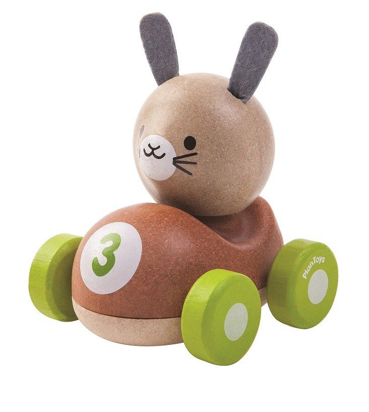 Užijte si skvělou zábavu s tímto králičím závodníkem. Díky jemně utvořeným křivkám může dítě auto snadno uchopit, jezdit s ním a trénovat tak jemnou motoriku.