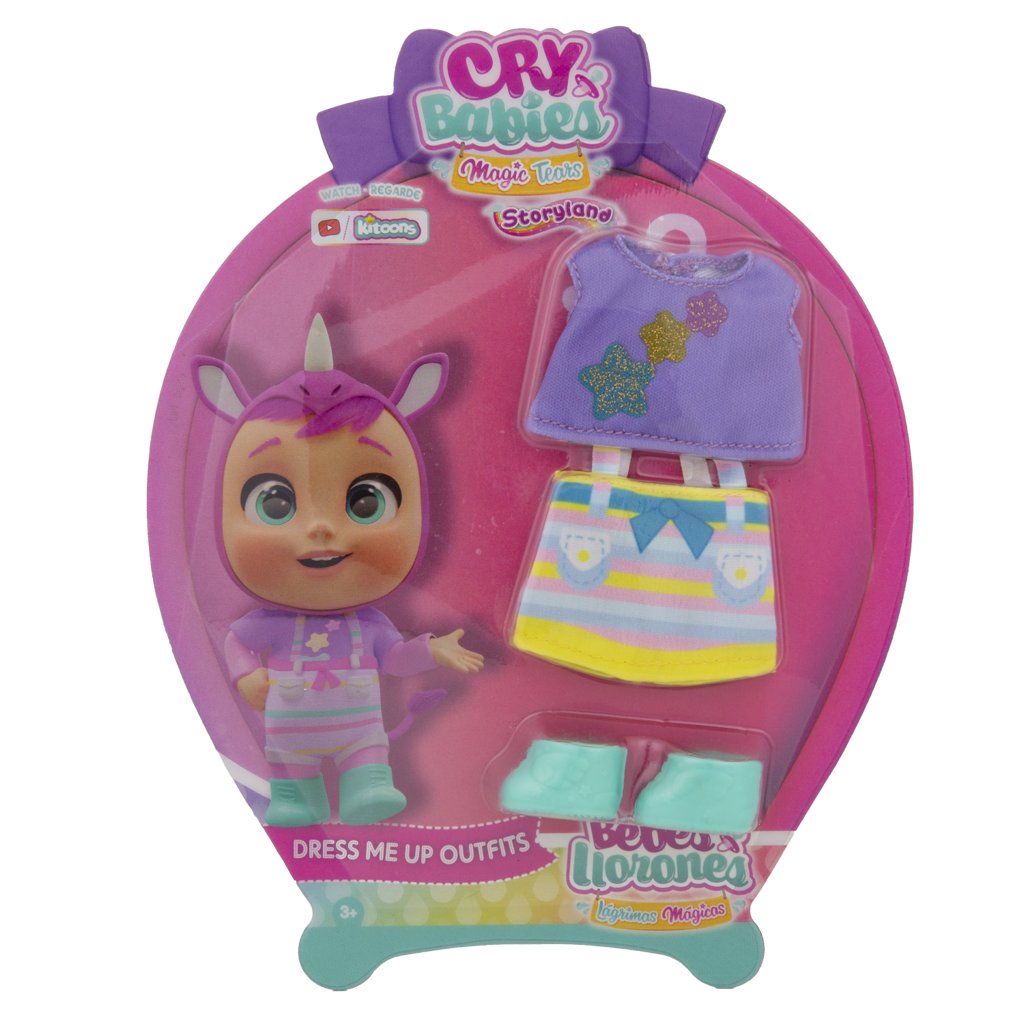 Sada s oblečením pro panenky Cry Babies Magic Tears. Každá sada obsahuje 3 kusy oblečení, boty a věšák. Samotná panenka se v této sadě NENACHÁZÍ. przeczytaj całość
