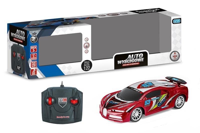 Auto wyścigowe zdalnie sterowane czerwoneW zestawie:auto 17 cm,pilot.Funkcje: pełen zakres jazdy, ustawienie zbieżności kół.Baterie: 3 x AA 1,5V do auta, 2 x 1,5V AA do pilota (brak w zestawie). przeczytaj całość