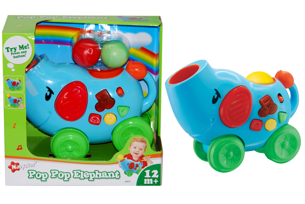 Usměvavý slon se zvuky a vystřelováním míčků. przeczytaj całość