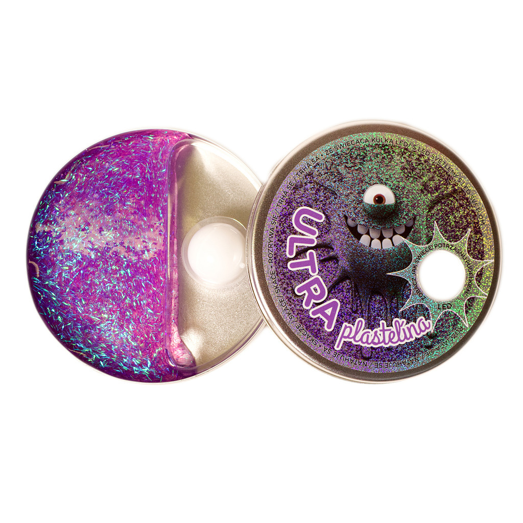 ULTRA Plastelina to unikalna masa o wyjątkowych właściwościach fizycznych. Świetnie się formuje, rozciąga jak guma do żucia, skacze jak piłeczka, rwie się jak papier, działa jako doskonała pomoc antystresowa. Możesz wybierać spośród 6 kombinacji kolorów. Ta ultraplastelina dodatkowo zawiera kuleczkę z kolorowym światłem LED, które podczas ruchu świeci i miga. Baterie są niewymienne - 3×AG10 (w produkcie). Dla dzieci od 3 lat.