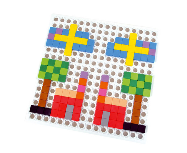 Veselá barevná čtvercová mozaika, se kterou můžeš skládat vzory, ornamenty, geometrické tvary nebo celé obrázky. Učí barvocitu, zlepšuje przeczytaj całość