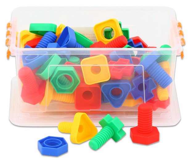 Barevný set plný velkých geometricky tvarovaných matic a šroubů je vhodný menší i větší děti.Zlepšuje jemnou motoriku, manuální zručnost, učí rozlišovat barvy a tvary.Vhodným doplňkem hry jsou pracovní karty pro párování šroubů. K dostání v našem e-shopu: przeczytaj całość