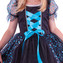 Parádní karnevalový kostým s motivem čarodějnice! Kostým modro-černé barvy ve velikosti S je určen pro holčičky ve věkovém rozmezí 4-6 let (105-116 cm). Šaty jsou zdobené tyrkysově modrou stuhou a metalickými hvězdičkami. Součástí balení je perfektně sladěný klobouk, který je rovněž zdoben...