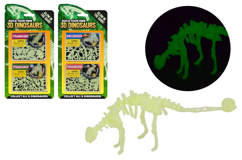 Skládací 3D dinosaurus svítící ve tmě. Balení obsahuje dva různé dinosaury, 6 různých druhů. Dinosaurus vítí ve tmě. przeczytaj całość