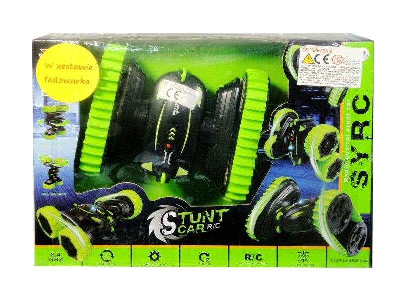 Auto wyczynowe sterowane pilotem . Auto porusza się we wszystkich kierunkach, obraca się o 360 stopni. Osobno obraca się body i opony. Zabawka działa na baterie typu AA (niezałączone) oraz baterię litową (akumulator) załączoną do zabawki. Zabawka przeznaczona dla dzieci od 5 lat. Produkt zapakowany w kartonowe opakowanie z przezroczystym okienkiem. Podane wymiary stanowią wymiar opakowania