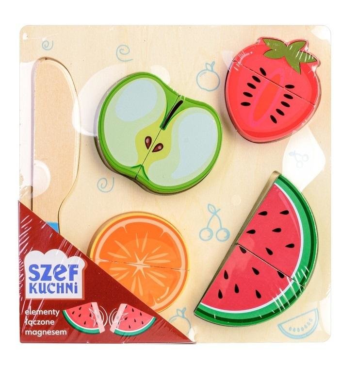 Zestaw "Szef kuchni" rozwija wyobraźnię, kreatywność oraz motorykę dziecka. Zabawa zestawem daje możliwość poznania owoców, warzyw i przekąsek, zachęca do gotowania oraz nauki o zdrowym odżywianiu. Wszystkie elementy wykonane są z drewna, pokryte bezpieczną dla dzieci farbą. Elementy połączone... przeczytaj całość
