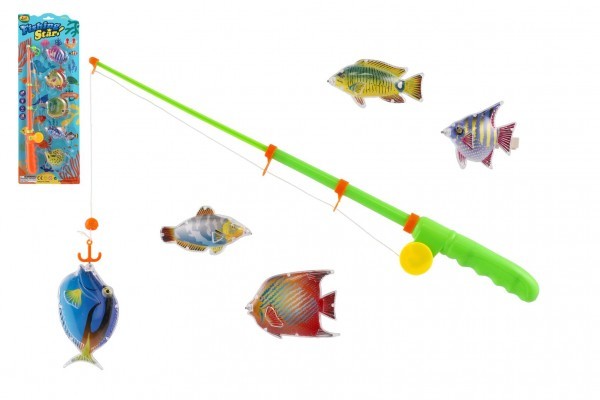 Hra ryby/rybář magnetická plast 5ks+prut plast 39cm 2 barvy na kartě