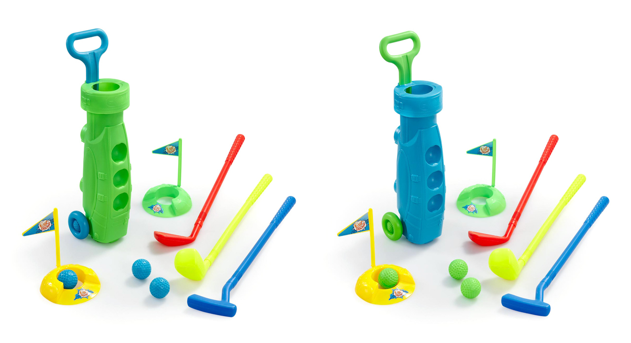 Świetny zestaw do golfa z trzema wielobarwnymi kijami, trzema piłeczkami do golfa, dwoma dołkami i wózkiem do przewozu sprzętu golfowego. Golfa można zagrać gdziekolwiek tylko zechcesz - wystarczy wszystko załadować na wózek i wyruszyć. W dwóch wariantach kolorystycznych. Pakowane jako mieszany zestaw. Wymiary opakowania: 17 x 55 x 13,5 cm. Wiek 3+