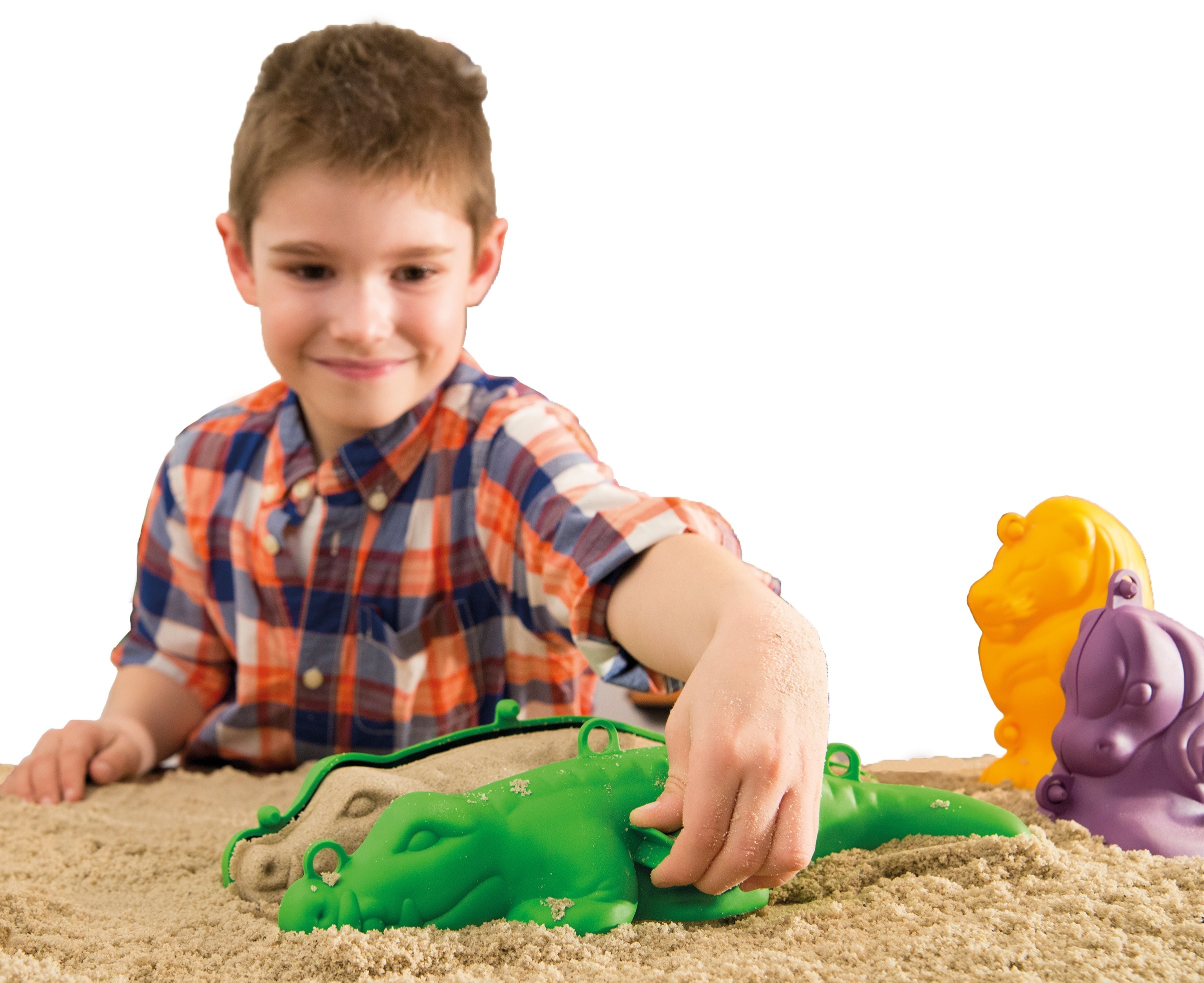 Stavba trojrozměrných figurek z písku půjde dětem snadno a rychle s těmito speciálními velkými dvojdílnými 3D formičkami.Stačí zacvaknout oba díly formičky k sobě, zespodu ji naplnit pískem, dát na místo, kde chcete postavičku mít, zatáhnout za úchyty, aby se formička otevřela a je hotovo.Díky...