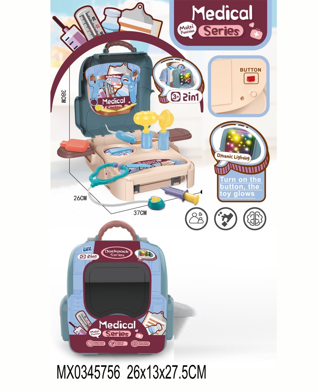 Doktorský set v praktickém balení, lehce sbalíš a dáš na záda jako batůžek. Set obsahuje spoustu doktorského příslušenství: pipeta, nůžky, brýle, tabletku, teploměr, stetoskop, otoskop a další příslušenství. Podporuje koordinovaný vývoj těla a mozku, pomáhá dítěti naučit se koordinovat oči, ruce... przeczytaj całość