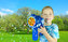 FRU BLU Mega Blaster to idealny dodatek do zabaw na zewnątrz i w pomieszczeniach. Dzięki praktycznemu zasobnikowi na płyn o pojemności 0,4 litra możesz tworzyć bańki szybko i bez zbędnych przerw, co zwiększa zabawę i płynność gry. Bańki mają ogromne rozmiary i niesamowite kształty, świecą wszystkimi kolorami tęczy, a dzięki specjalnemu płynowi produkowanemu w UE są bardzo trwałe i utrzymują się dłużej niż zwykłe bańki, nie pękając tak łatwo.