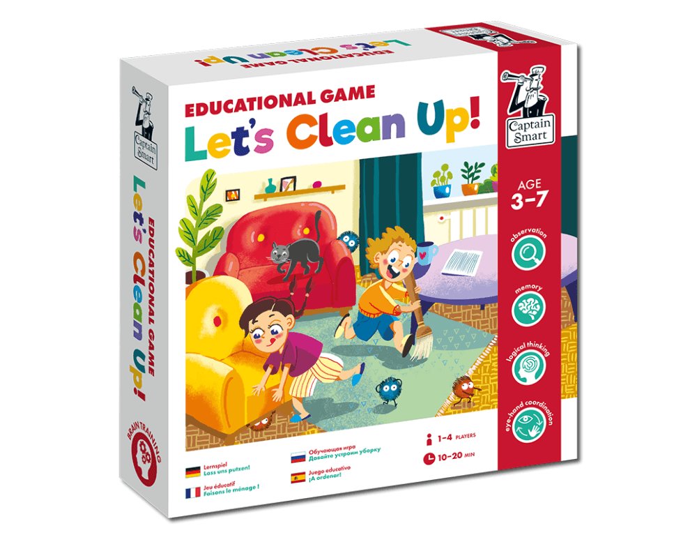 Przyjmij wyzwanie sprzątania i potrenuj swoje refleksy. Powstrzymaj psotne kule kurzu, zanim dotrą do twoich skarpetek, lalek lub samochodzików! Gra nauczy cię sortować przedmioty według rodzaju, rozmiaru lub koloru. Trenuj pamięć, spostrzegawczość, koncentrację i myślenie logiczne. Niech sprzątanie będzie przyjemnością, a nie nudną rutyną! Gra dla 1-4 graczy od 3 lat. Czas jednej gry: 10-20 minut.
