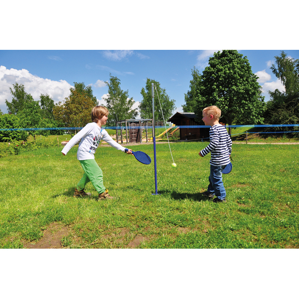W zestawie znajdują się dwie plastikowe rakiety, które doskonale leżą w dziecięcych rękach i są bezpieczne w użyciu. Dzięki lekkim i wytrzymałym materiałom cały zestaw nadaje się dla dzieci od 3 lat, które w zabawny sposób mogą uczyć się dyscypliny sportowej, a jednocześnie rozwijać motorykę i zręczność.