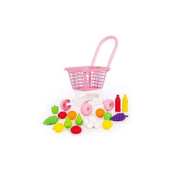Nákupní vozík Supermarket č.1 růžový + Sada potravin . Baleno v síťce, rozměry: 365x310x240 mm /+3 przeczytaj całość