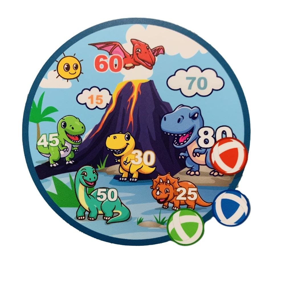 Tarcza z piłeczkami na rzepy. Wzór w dinozaury. Wymiary opakowania: 36.5 x 36.5 x 4 cm przeczytaj całość