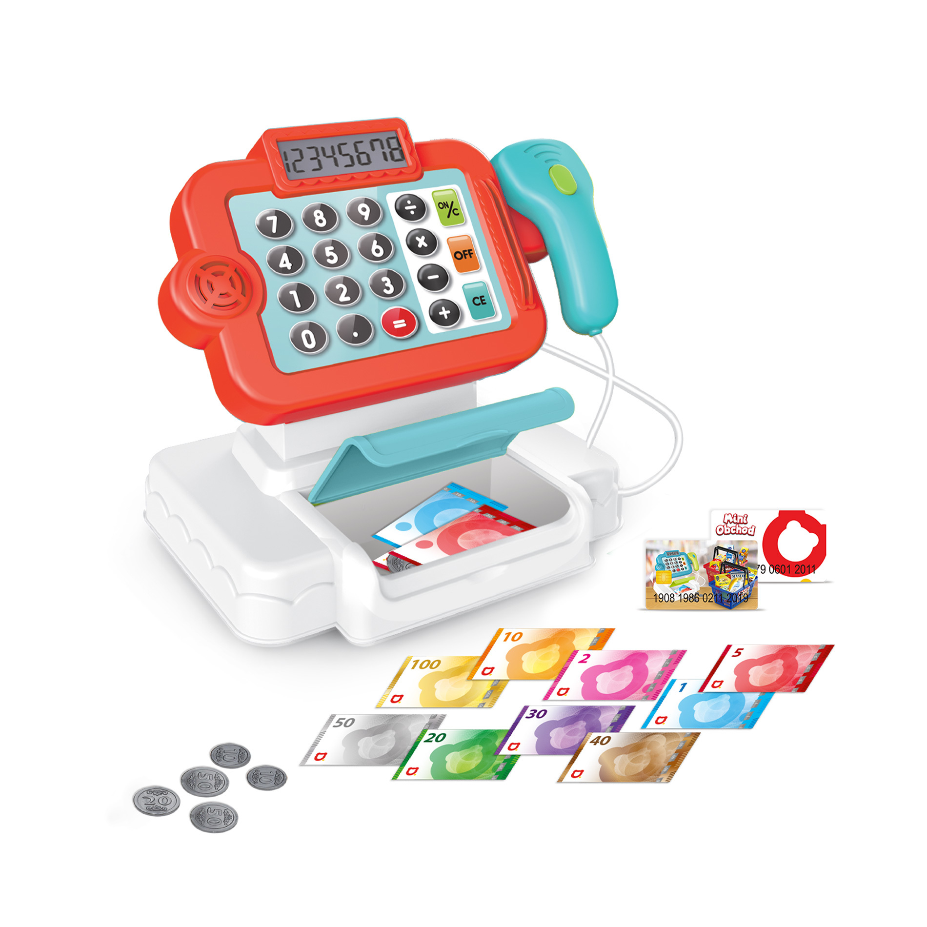 MINI OBCHOD - pokladna česká s učením jak nakupovat - červená