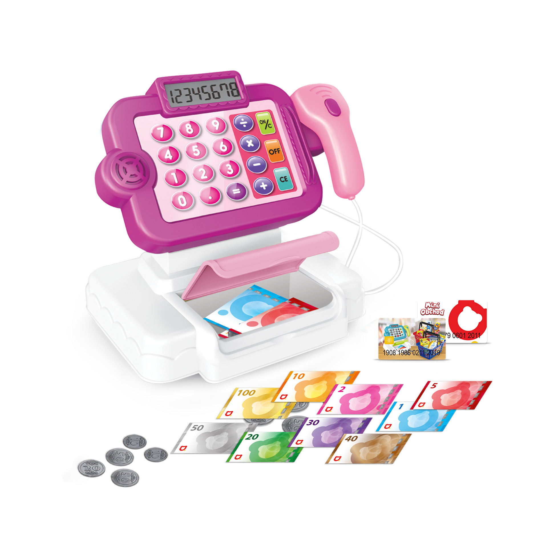 MINI OBCHOD - pokladna česká s učením jak nakupovat - růžová