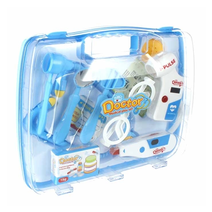 Lékařská souprava, její obsah je stetoskop, teploměr, měřič tepu, karta pacienta, 1x krabička na pilulky, optická tabule, brýle, lékařské zrcadlo, 2x kladivo. Vyžaduje napájení 4x AG 10 bateriemi - součástí balení. Rozměry produktu jsou 27x24x6cm. Určeno pro děti ve věku 3+. przeczytaj całość