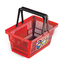 - Czerwony dziecięcy koszyk zakupowy, odpowiedni dla małych dzieci.