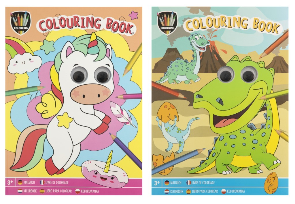 Omalovánky s pohyblivými očíčky – dva druhy Jednorožec a Dino. przeczytaj całość