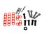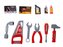 stół roboczy 2 pojemniki na śruby młotek klucz szczypce młotek piła ręczna śrubokręt Phillips imadło przedłużenie 2 gwoździe 10 nitów 10 elementów do wkręcania 14 podkładek 10 śrub dolna półka płyta z otworami