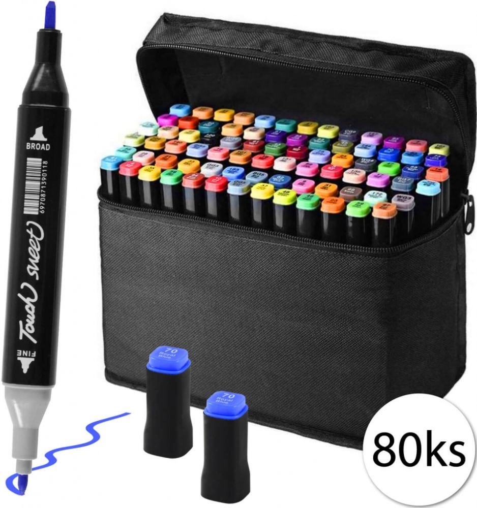 Zrób radość sobie lub bliskim! Ten obszerny zestaw 80 dwustronnych markerów w praktycznym etui to idealny wybór dla wszystkich twórczych dusz, dzieci i dorosłych, którzy uwielbiają rysować, pisać lub tworzyć kolorowe prace.