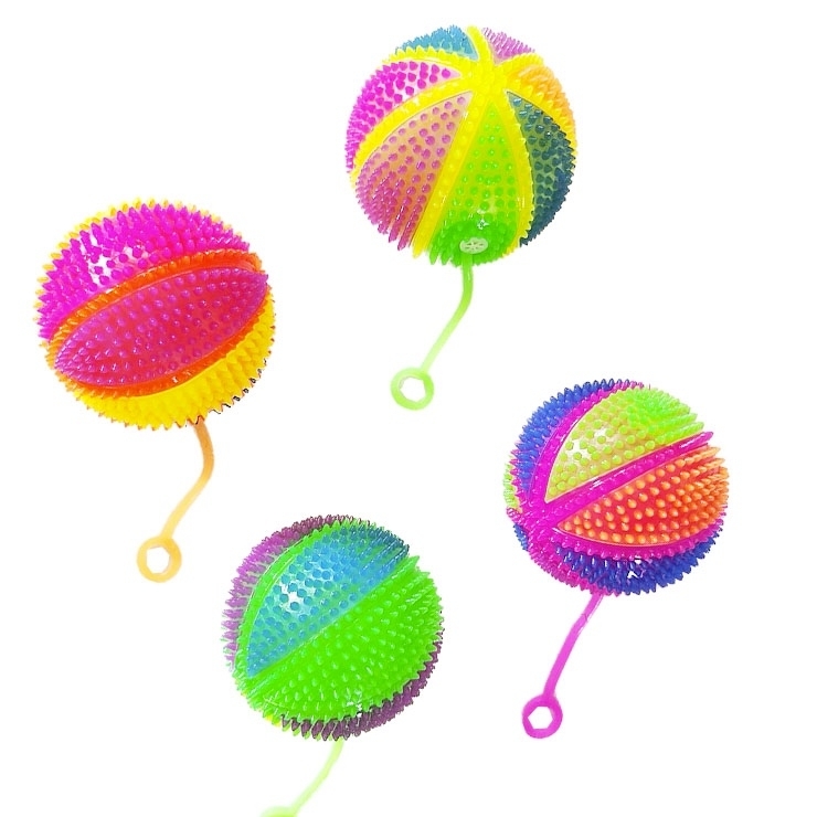 Míček svítící. Masážní míček větší, se světlem a s ostny v 4 barvách s průměrem 7,5 cm, po stisknutí píská, po úderu přerušovaně barevně svítí.Cena je za kus. przeczytaj całość