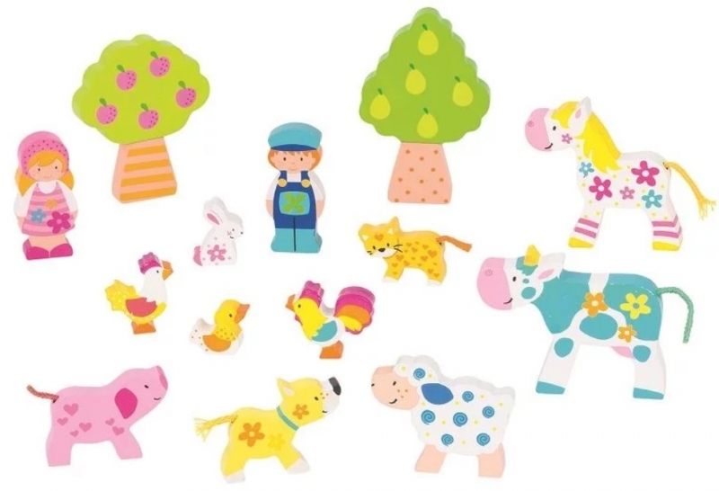 Goki Dřevěná hračka Susibelle - Farma, 14 dílků