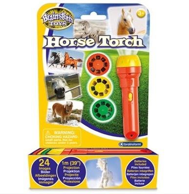Ta poręczna latarka LED jest także projektorem fotograficznym, wyświetlającym kolorowe obrazy o szerokości do jednego metra na ścianach i sufitach..Latarka posiada 3 dyski slajdów z 24 kolorowymi fotografiami koni i kucyków 22 różnych ras. Oglądaj zdjęcia konia Shire, koni arabskich, źrebaka...