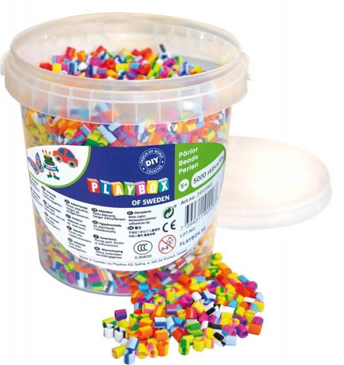 PLAYBOX Zažehlovací korálky v kbelíku - pruhované 5000ks