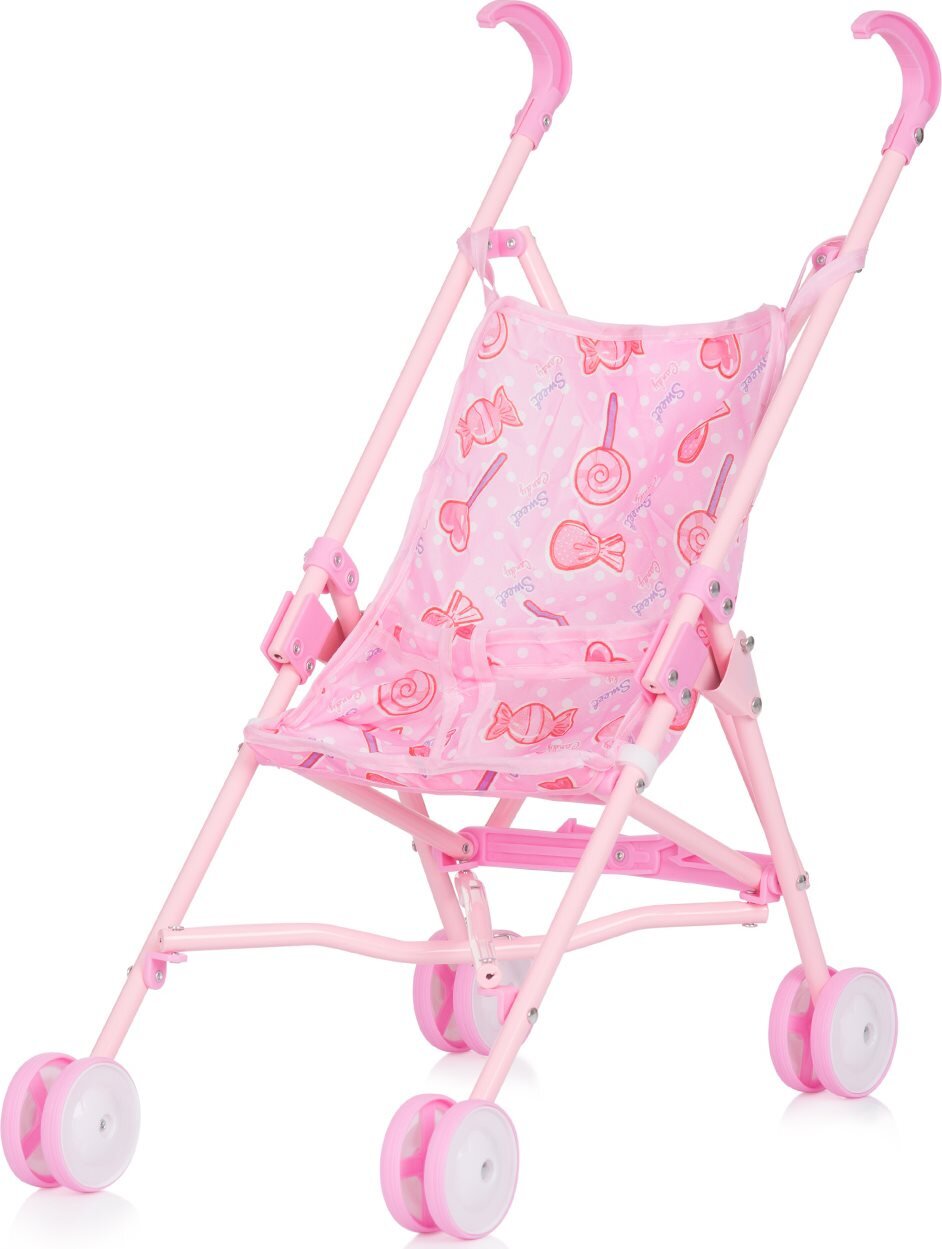 Dětský kočárek v moderním růžovém odstínu s lízátky, ve kterém se tvé panence ihned zalíbí!
