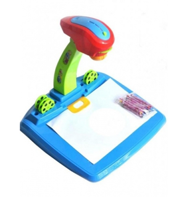 Dětský kreslící projektor G21 BLUE Kreslící projektor G21 je vyroben ze silného barevného plastu a součástí vybavení je 6 desek s původními obrázky. Desku vložíte do zapnutého projektoru, do klipu na podložce upevníte papír a obrázeek z desky projektor promítne na papír....